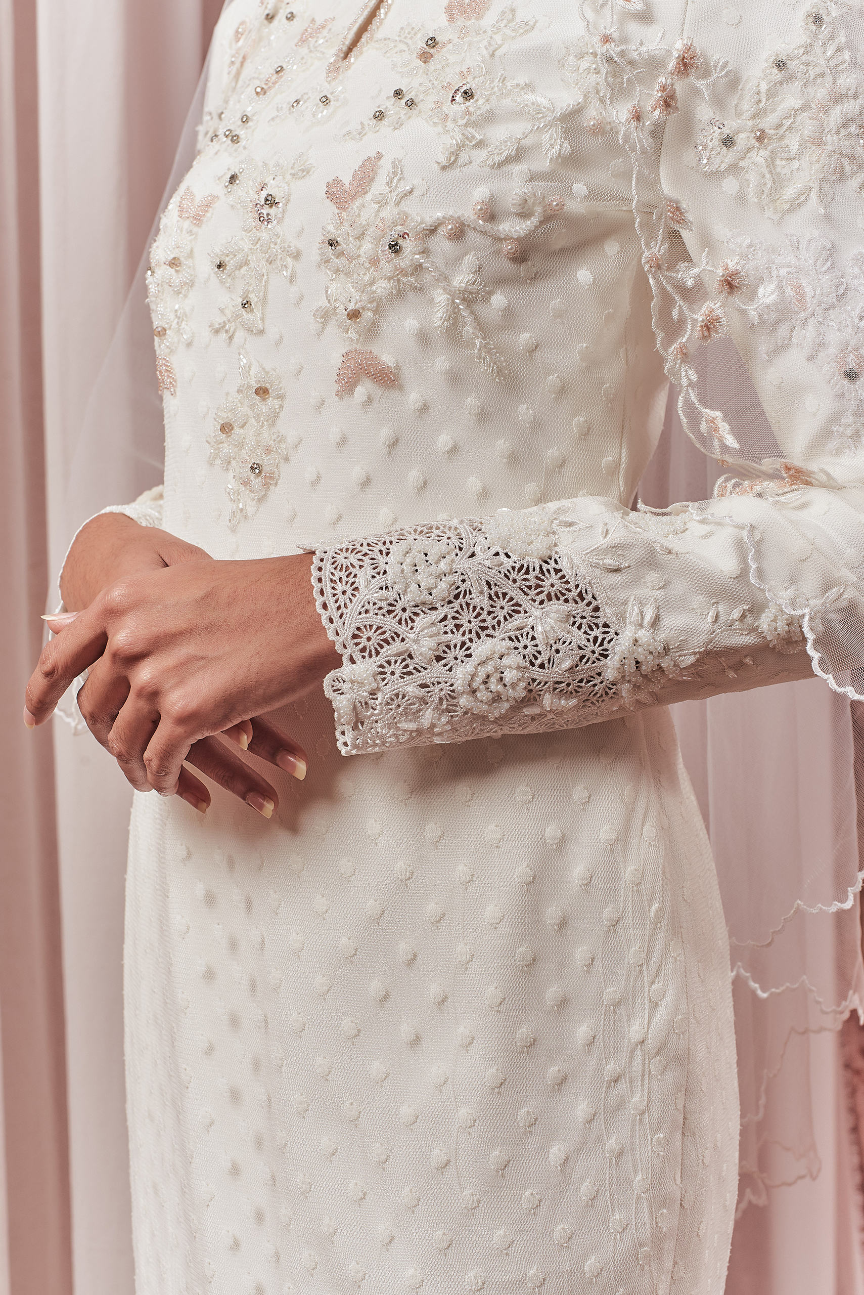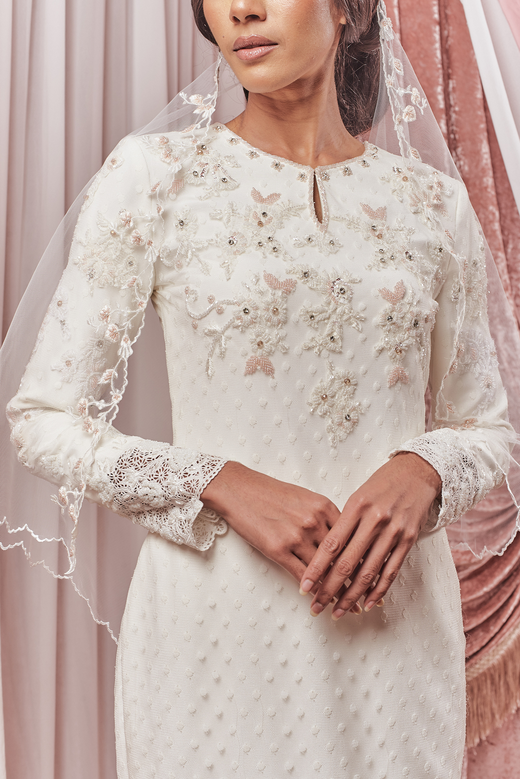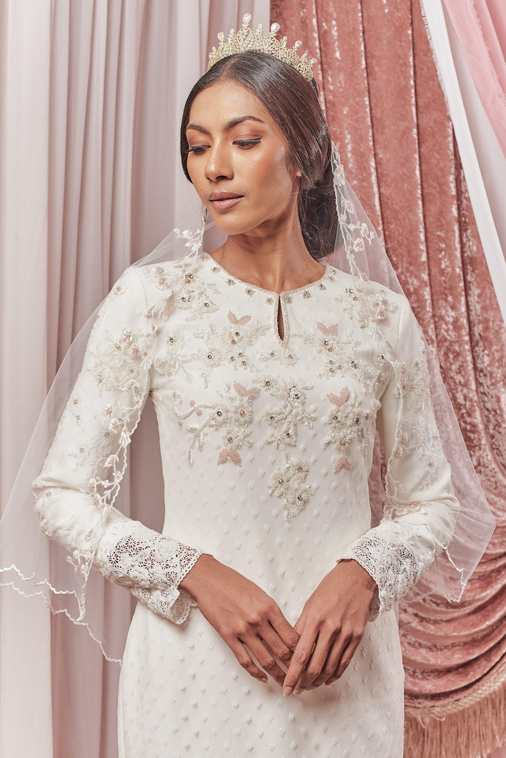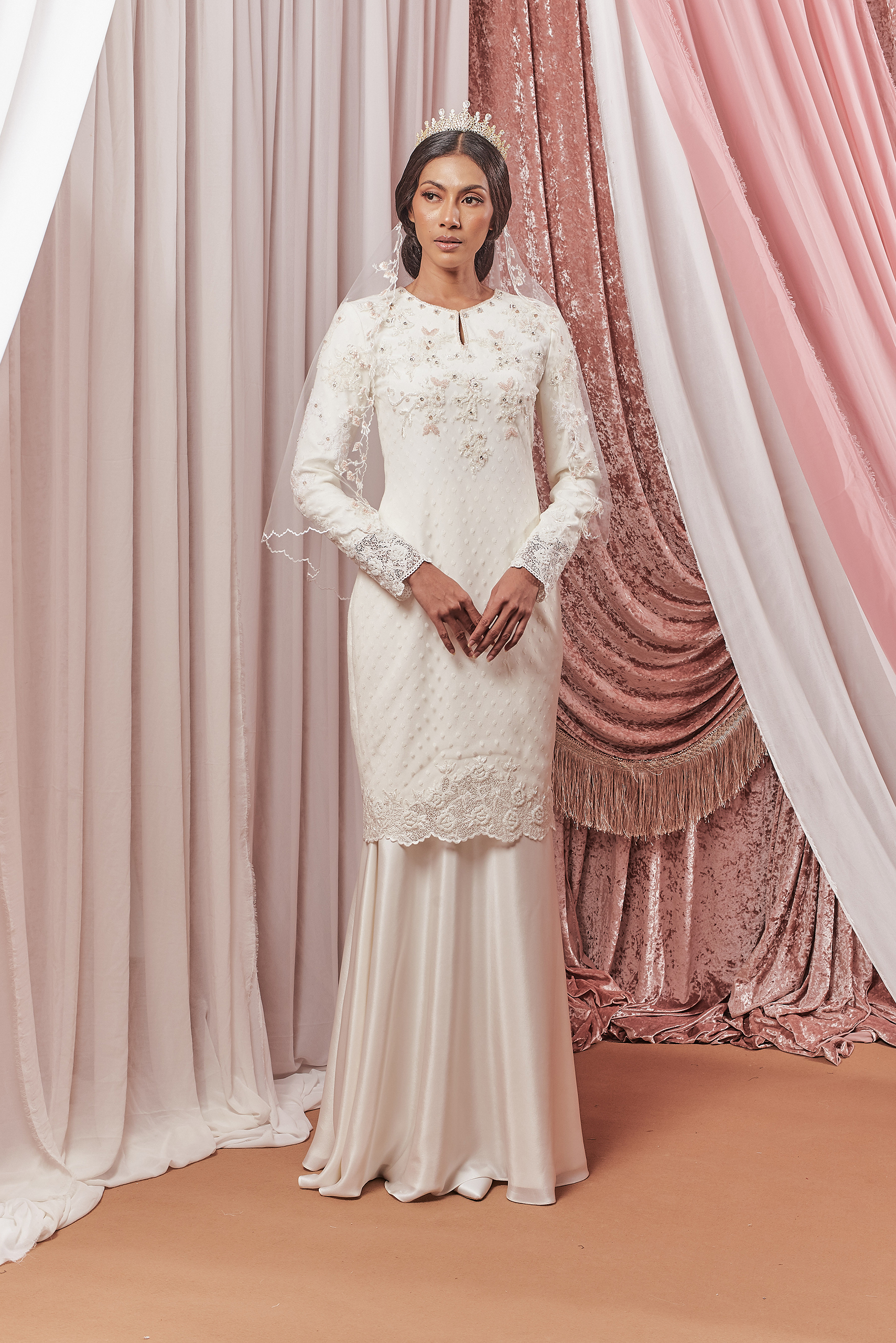 DAHLIA playfulness of colourful beadings of lace and polka dots material, while the romantic veil of sulam goyang give a romantic feel.