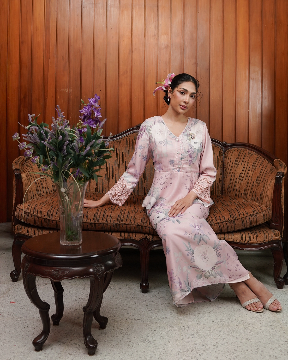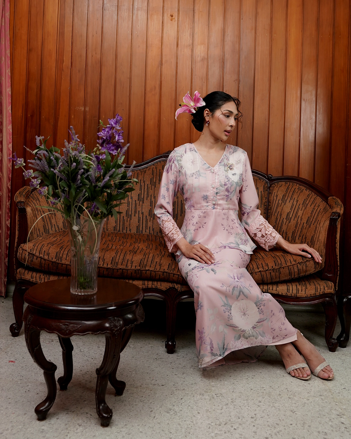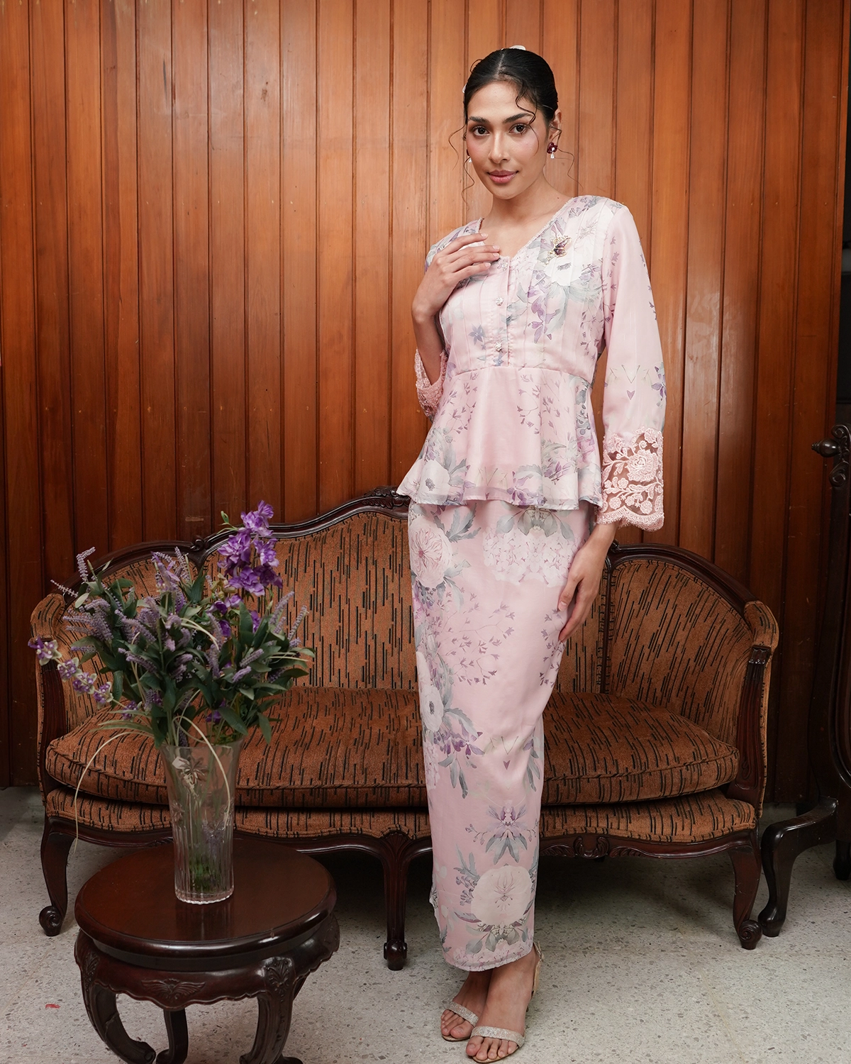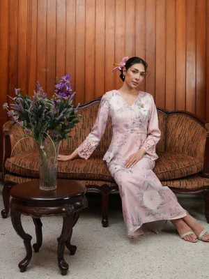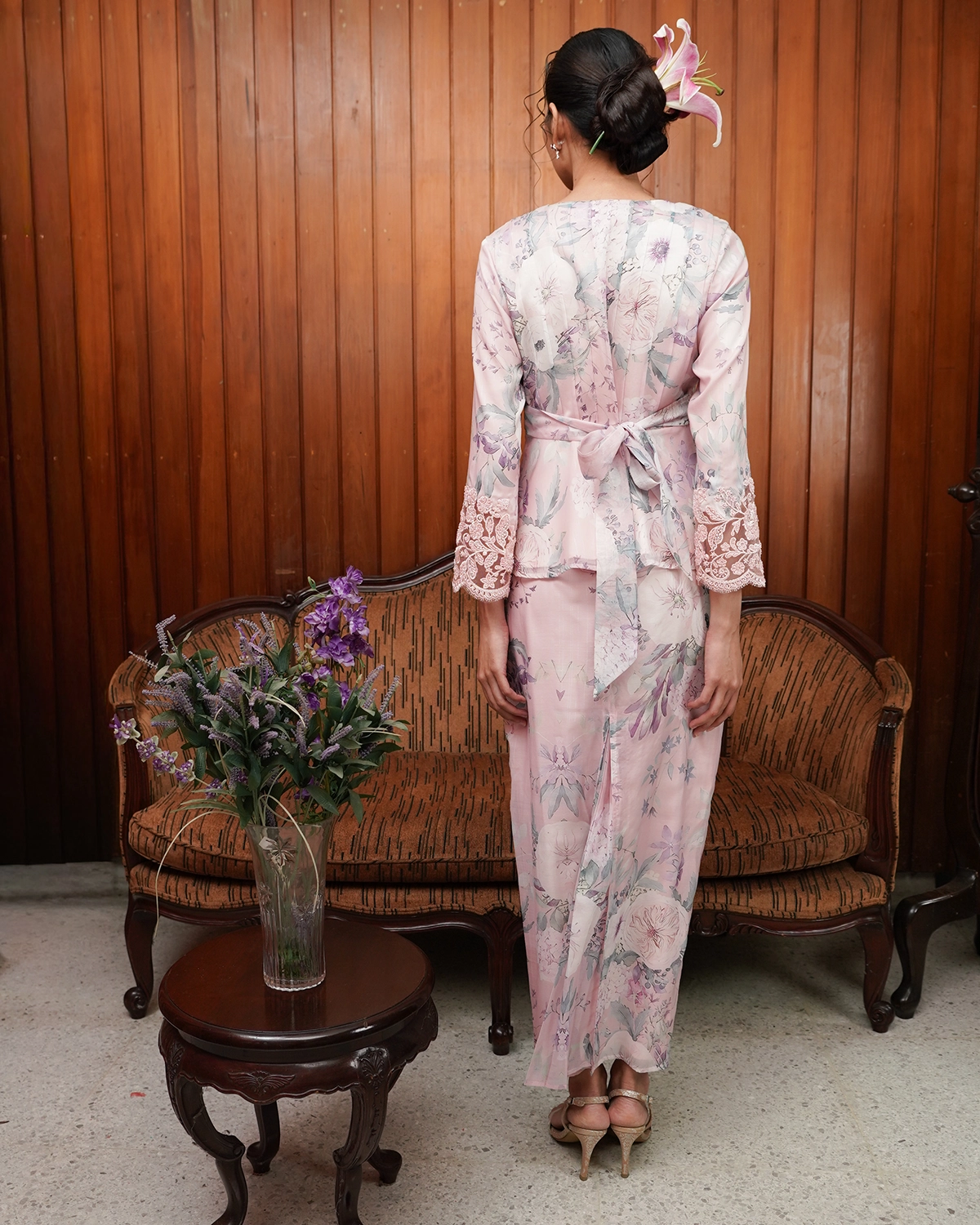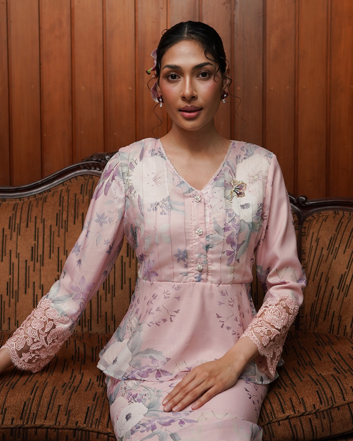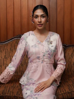 This peplum short kurung features a delicate ribbon that can be styled on the front or back for subtle change in looks.