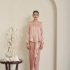 Baju kurung kedah in soft peach with full lining and button pearls. Mermaid skirt fully lining.